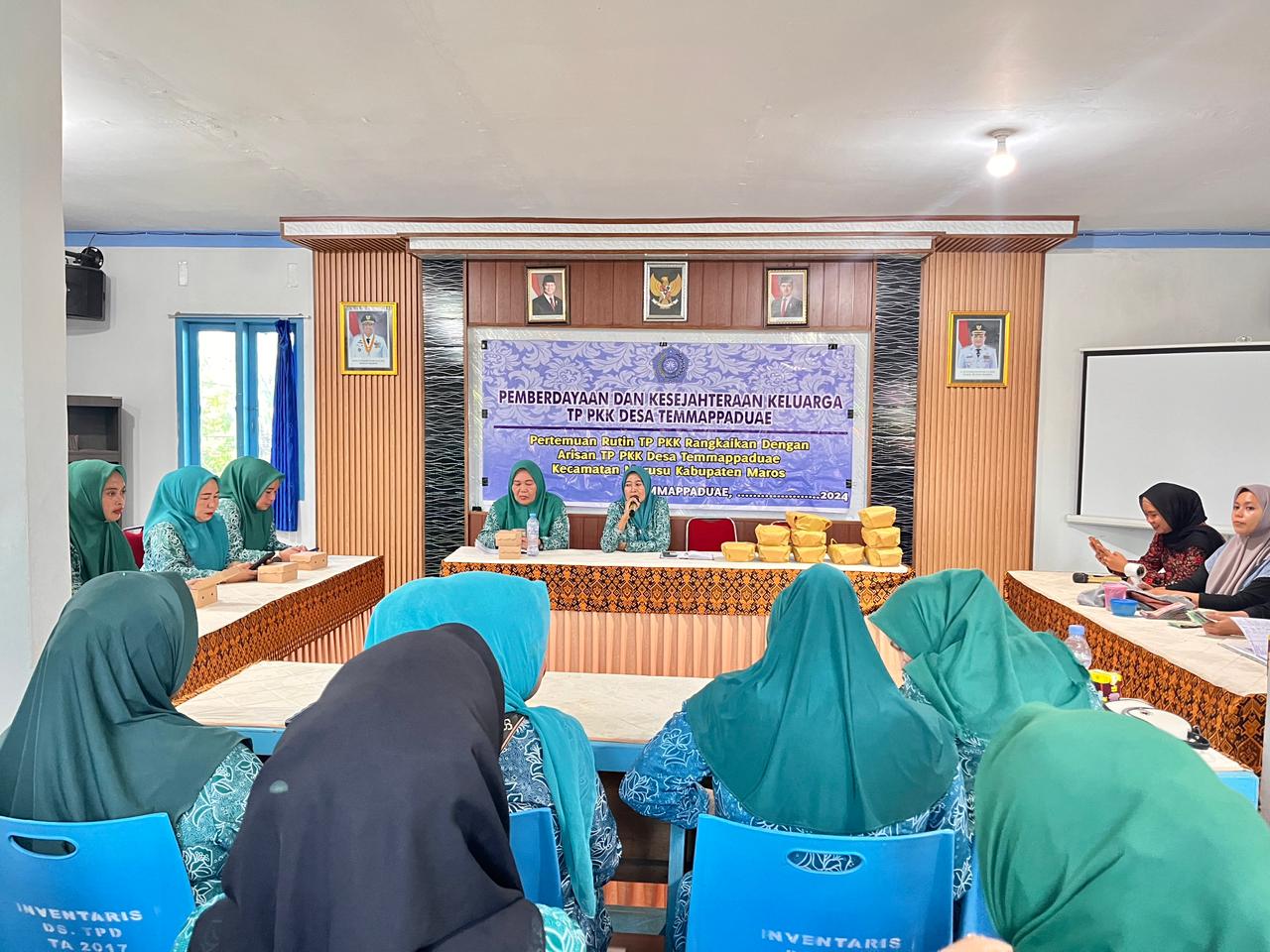 Temmappaduae, Maros - Tim Penggerak Pemberdayaan dan Kesejahteraan Keluarga (TP PKK) Desa Temmappaduae kembali menyelenggarakan kegiatan rutin arisan pada tanggal 24 Oktober 2025. Acara yang berlangsung di aula kantor desa ini dihadiri oleh Ketua TP PKK Desa Temmappaduae, para kader PKK, serta staf Desa Temmappaduae. Kegiatan diawali dengan sambutan dari Ketua TP PKK Desa Temmappaduae yang menekankan pentingnya arisan PKK sebagai wadah mempererat silaturahmi antaranggota. Beliau juga menyampaikan bahwa kegiatan ini menjadi sarana untuk berbagi informasi dan motivasi dalam menjalankan program kerja PKK di tingkat desa. Selain arisan, acara juga diisi dengan diskusi ringan mengenai program kerja PKK, termasuk peningkatan peran keluarga dalam kesehatan, pendidikan anak, dan pengembangan ekonomi kreatif rumah tangga. Para kader PKK juga menyampaikan laporan singkat terkait kegiatan yang telah dan akan dilaksanakan di masing-masing dusun. Suasana hangat, penuh canda tawa, dan semangat gotong royong mewarnai seluruh rangkaian acara. Di akhir kegiatan, dilakukan penarikan arisan, pembagian *doorprize*, serta sesi foto bersama untuk mempererat kekompakan antaranggota. Diharapkan, melalui kegiatan rutin ini, TP PKK Desa Temmappaduae semakin solid dalam menjalankan perannya sebagai mitra pemerintah desa dalam memberdayakan keluarga menuju kesejahteraan yang lebih baik.