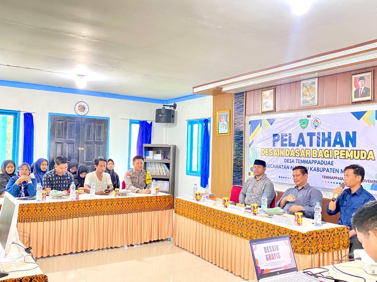 Temmappaduae, Maros - Desa Temmappaduae, Kecamatan Marusu, Kabupaten Maros, menggelar Pelatihan Desain Dasar bagi pemuda-pemudi desa pada Minggu, 16 November 2025. Kegiatan ini bertujuan untuk mendorong kreativitas generasi muda dan meningkatkan keterampilan mereka di bidang desain grafis. Pelatihan ini disambut dengan antusiasme tinggi oleh para peserta dan mendapatkan dukungan penuh dari pemerintah desa serta kecamatan. Acara pembukaan dihadiri oleh Kepala Desa Temmappaduae, yang dalam sambutannya menekankan pentingnya penguasaan keterampilan digital di era modern. Beliau menyampaikan bahwa kemampuan desain memiliki potensi besar untuk dikembangkan menjadi peluang usaha maupun pendukung kegiatan kemasyarakatan. Kehadiran Kepala Dinas Pariwisata dan Kepemudaan Kabupaten Maros menambah istimewa acara ini. Beliau mengapresiasi inisiatif Desa Temmappaduae dalam menyediakan ruang belajar bagi pemuda-pemudi. Beliau juga menegaskan dukungan penuh pemerintah kabupaten terhadap program-program pengembangan kreativitas dan kompetensi pemuda, khususnya yang berpotensi mendorong sektor pariwisata dan ekonomi kreatif desa. Selain itu, turut hadir Camat Marusu, para Kepala Dusun se-Desa Temmappaduae, serta Bhabinkamtibmas Desa Temmappaduae. Kehadiran para tokoh ini mencerminkan komitmen bersama dalam pemberdayaan pemuda sebagai aset daerah. Materi pelatihan mencakup pengenalan desain grafis dasar, penggunaan aplikasi desain, prinsip warna dan tipografi, serta penerapannya dalam pembuatan poster, logo, dan konten media sosial. Para peserta sangat aktif mengikuti setiap sesi, terutama saat praktik langsung. Pelatihan ini diharapkan dapat membuka wawasan peserta tentang peluang kerja dan usaha di bidang desain grafis, serta meningkatkan partisipasi pemuda dalam mendukung kegiatan desa melalui media kreatif. Pemerintah desa berharap agar pemuda-pemudi Temmappaduae dapat lebih percaya diri dan mampu mengembangkan bakat kreatif mereka. Sebagai tindak lanjut, pelatihan lanjutan di bidang teknologi digital dan ekonomi kreatif direncanakan akan diselenggarakan di masa mendatang.